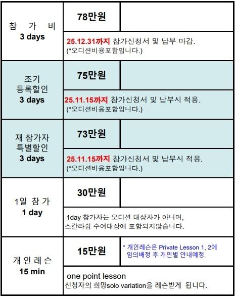 · 개인레슨 신청을 희망할 경우, 참가신청확인 이메일에 포함된